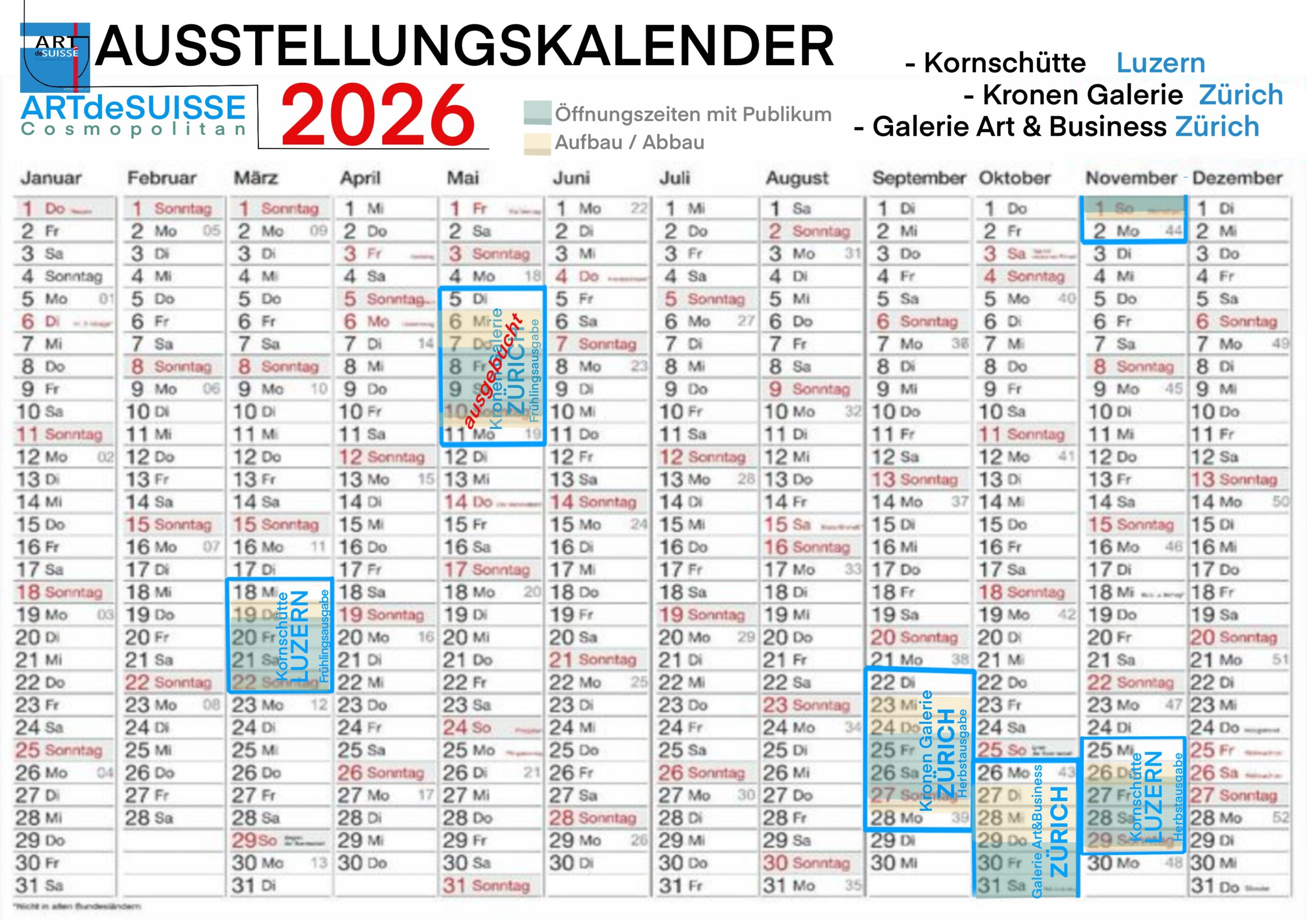 Artists interested in participating in ARTdeSUISSE events can apply for one of the following exhibitions: